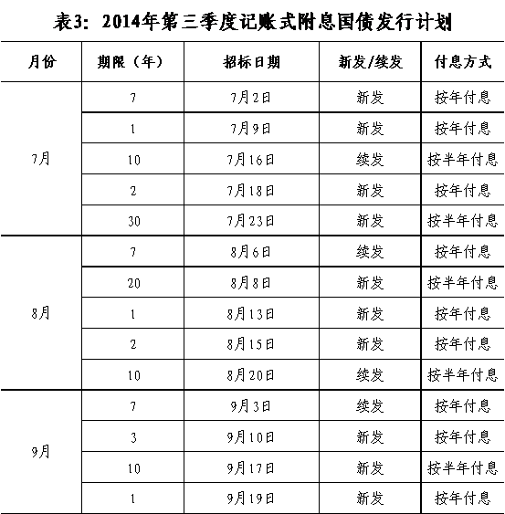 现公布2014年第三季度国债发行计划(见附件)。执行中如有变动,以届时国债发行文件为准。